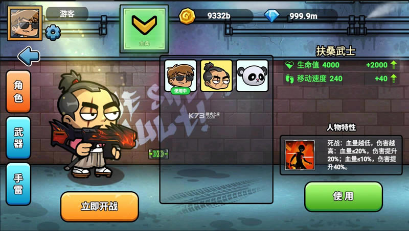 游戏内可以自由选择各种武器随时开战,通过灵活的操作控制人物淘汰所有对手,获得最终胜利。