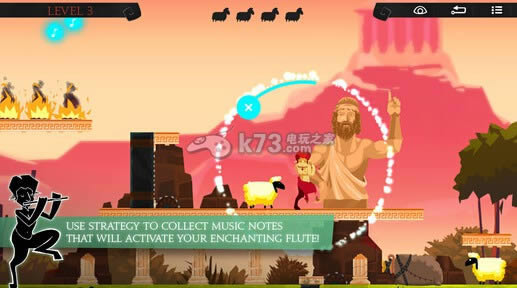 《潘之歌(Song Of Pan)》这款游戏是一款休闲类的手机游戏,在游戏中故事剧情还是比较的丰富的,玩家们将会在奥林匹斯山开始一段冒险。游戏中的玩法也是非常的有意思的,玩家们需要来收集一些音符,通过音符来演奏长笛。演奏长笛的作用就是为了带领迷途的羔羊回家。