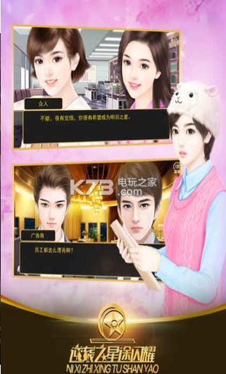 你是一个娱乐圈小助理,偶然得到了成为艺人的机遇。一点点累积人气,一步步踏上星途,从娱乐圈新人到超级巨星,且看你如何一路逆袭,星途闪耀!【本游戏不影射任何明星,游戏人设原创无原型。】