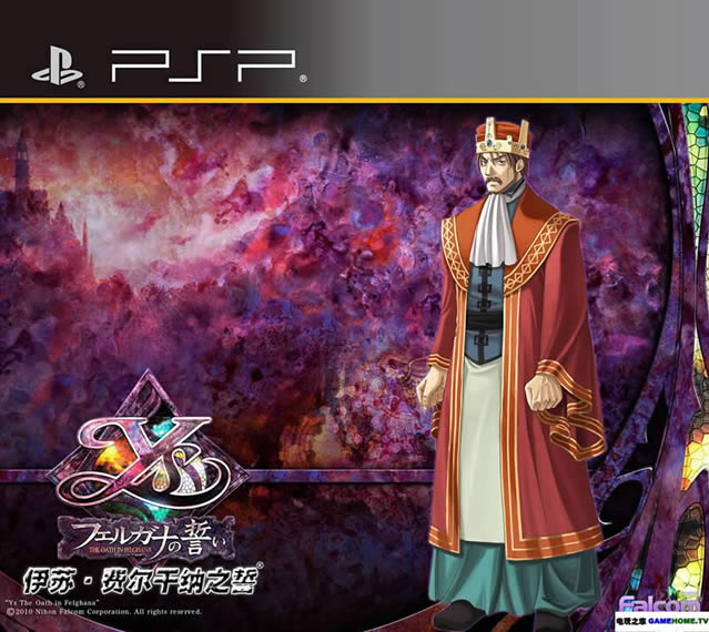 日本游戏开发商FALCOM公司制作、发行。预定推出以旗下累计销售套数超380万套的人气动作A·RPG《伊苏》系列最新作:《伊苏:费尔干纳之誓》(Ys: Felghana no Chikai)。本作是2005年6月发售的PC版《Ys: The Oath in Felghana》并追加原创新要素的移植版。本次预定在PSP掌机上推出,游戏目前预定2010年春季发售。日前本作的官方网站也已经开通,并且公布了游戏世界观设定与游戏画面信息,供各位玩家参考。