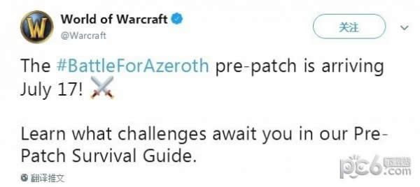 《魔兽世界》8.0正式上线时间为8月14日,今日官方宣布了8.0前夕的开启日期——7月17日。