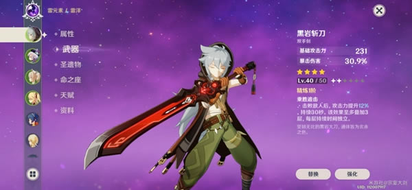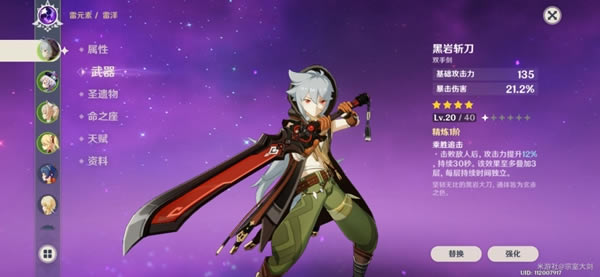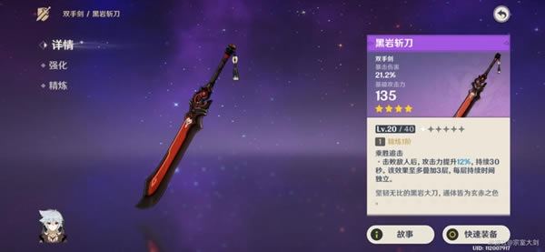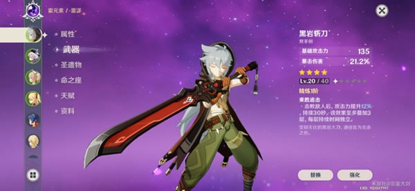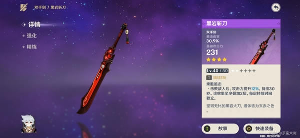 副词条暴击效果属性提升相当不俗,独特的词条被动以及基础攻击力,在四星大剑里算上品。