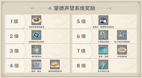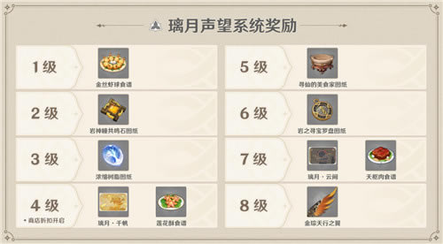 声望等级提升后,可以解锁声望小道具图纸、特殊城市功能、名片、领取食谱、风之翼等奖励。