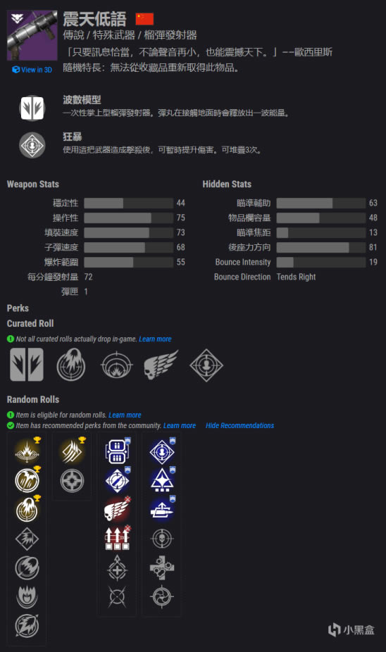 虽然600射速的步枪被削弱了但是这把枪依旧好用,优秀perk池以及手感布洛特亨德尔用了都说好。下位替代品有个花园第三关掉落的鲁莽神谕。