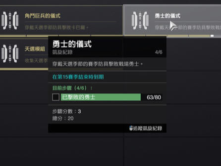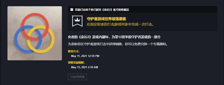 第二个是守护者游戏,只要在守护者游戏活动期间完成指定职业打击(高塔选取)就能去领取了