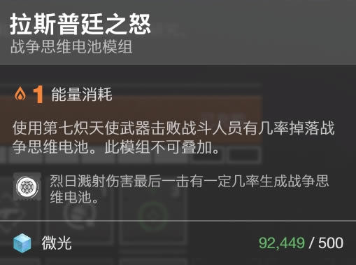 装上此模组后,你的电池爆炸伤害就会转化为烈日溅射伤害,所以在理论上,这个模组和拉斯普廷之怒配合下,可以只需引爆电池击杀大片敌人即可产生下一个电池,并且也可以为你的电池进行增伤,一举两得。