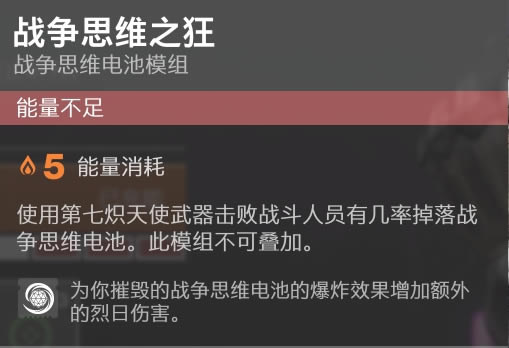 减伤高达50%的神奇模组。可以说我在战场模式中能活下来基本上都靠着这个模组。并且引爆也不会影响电池的作用,既然把敌人都炸死了,就不需要减伤了战争思维之寿
