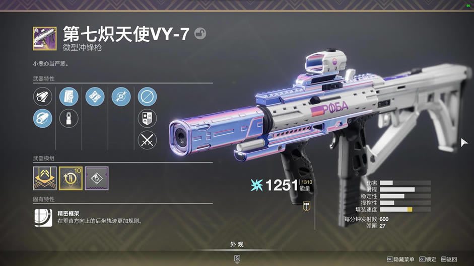 由于有人发现了恶化微冲可以产电池,在影临赛季也掀起了一小股刷恶化微冲godroll的热潮,不过这武器几乎没几个能方便利用的perk,所以大部分人也不会太重视。(主要是军备模组还健在)