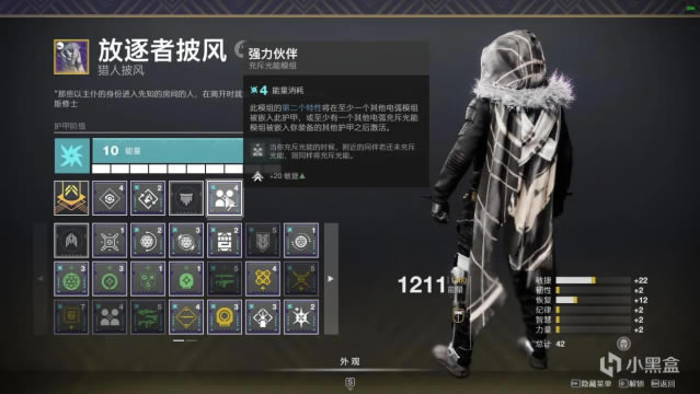 职业物品上,因为棒鸡移除了泵东霰弹等武器击杀回复超能的3费模组,我再次装上了可以提升20点敏捷的强力伙伴来弥补我的“果装”(这里指无模组的装备)偏科缺陷,加上“扩展”模组,在闪身的时候减少近战技能CD,和赌徒闪身的“在敌人附近闪身回满近战技能”来叠两层猎人冰飞镖,收益非常大。