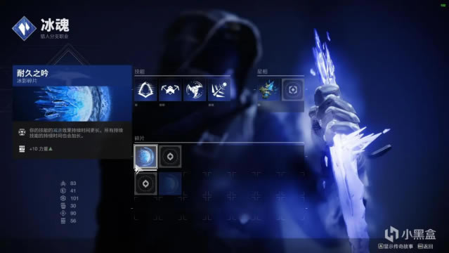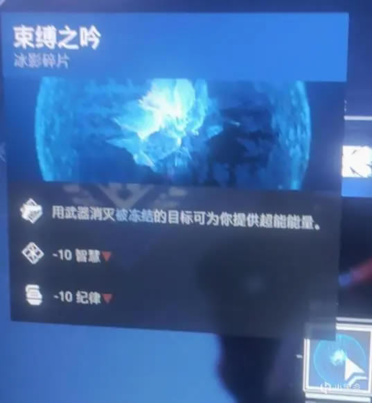 我把自己得到的第一个碎片兑换了“耐久之吟”,将冰雷和冰飞镖的减速效果和持续时间延长,同时还可以加上10力量,进一步减少冰飞镖CD,但我也注意到,“束缚之吟”的碎片效果是“用武器消灭被冻结的目标可为你提供超能能量”,虽然是年四罕见的回复超能碎片,但我并没有选,有三个主要原因:一是冰系猎人的技能在近距离容易让敌人减速,但并不能让敌人完全被冻结,这一点和术士的近战技能区别很大,整体上很难触发;二是中远距离交火时扔道具会被对面先拿到血量优势,就算冻结到敌人也会被很快补死,配合不上作战节奏;三是负收益代价过大,减10纪律和减10智慧加上前面的两点原因让我对这个碎片基本上没有兴趣,和“耐久之吟”有非常大的对比。