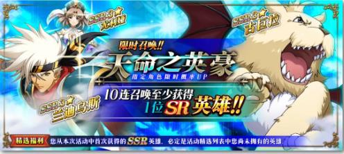 限时召唤「天命之英豪」中SSR级英雄尤利娅、兰迪乌斯、古巨拉出现概率提升!